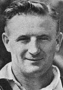 Tallon's non-selection for the 1938 Ashes touring party surprised commentators.[2][17] In selection deliberations, Bradman had lobbied for Tallon and Walker, asserting that Oldfield was past his best. The other two selectors, Chappie Dwyer from New South Wales and Bill Johnson from Victoria, outvoted Bradman. They selected Barnett, because of his previous tour to England, and Walker. Tallon's omission was overshadowed by that of Grimmett,[17] regarded alongside Bill O'Reilly as the world's leading legspinner.[18] No official reason was given for Tallon's non-selection.[17] A leak revealed that the reason for his omission was that he was not familiar with the bowling of Australia's three spinners: O'Reilly, Chuck Fleetwood-Smith and Frank Ward.[19] Another was Tallon's preference in standing back to medium pacers. In reality, Tallon stood back and stood up to the stumps depending on the situation. While the medium pacers were swinging the ball, he would stand back to avoid the risk of missing an edge. When the ball was old, he would stand up to the stumps when a medium pacer was operating and effect many stumpings with his fast reflexes.[17][19]