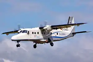 The first delivery, to the Japanese operator New Central Aviation, took place in September 2010.[19] RUAG decided to suspend production of the Dornier 228 NG after the completion of an initial batch of eight aircraft in 2013. In 2014, RUAG and Tata Group signed an agreement for the latter to become a key supplier of the program.[20] Production was restarted in 2015, with deliveries of four per year planned from 2016.[21] In February 2016, RUAG announced that they were set to begin serial production of the Dornier 228 NG at its German production line in mid-2016;[20][22] the assembly line is reportedly capable of producing a maximum of 12 aircraft per year.[23]