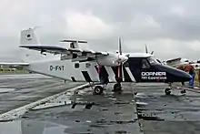 The Dornier 228 is a twin-engine general purpose aircraft, capable of transporting up to 19 passengers or various cargoes. It is powered by a pair of Garrett TPE331 turboprop engines. The Dornier 228 is commonly classified as a Short Takeoff and Landing (STOL)-capable aircraft, being capable of operating from rough runways and in hot climates. This capability has been largely attributed to the type's supercritical wing which generates large amounts of lift at slow speeds.[9][16] The Dornier 228 is typically promoted for its versatility, low operational costs, and a high level of reliability – possessing a dispatch reliability of 99%. RUAG Aviation have claimed that no other aircraft in the same class may carry as much cargo or as many passengers over a comparable distance as fast as the Dornier 228 NG.[16]