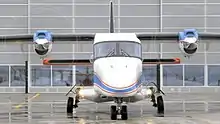 On 18 August 2010, the Dornier 228NG received its airworthiness certification from the European Aviation Safety Agency (EASA).[15] The final assembly for the type is located in Germany; however, most airframe subassemblies, such as the wings, tail and fuselage, are produced by HAL in India.[1][16][17] The main changes from the previous Dornier 228-212 model were a new five-blade propeller made of composite material, more powerful engines and an advanced glass cockpit featuring electronic instrument displays and other avionics improvements.[11][18]