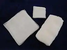 A dressing or compress[1] is a sterile pad applied to a wound to promote healing and protect the wound from further harm. A dressing is designed to be in direct contact with the wound, as distinguished from a bandage, which is most often used to hold a dressing in place. Many modern dressings are self-adhesive.