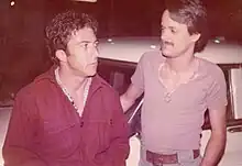 His first acting role was at the Pasadena Playhouse, alongside future Academy Award–winner Gene Hackman.[26] After two years there, Hackman headed for New York City, with Hoffman soon following. Hoffman, Hackman, and Robert Duvall lived together in the 1960s, whilst all three of them focused on finding acting jobs.[27][28] Hackman remembers, "The idea that any of us would do well in films simply didn't occur to us. We just wanted to work".[24] Hoffman's appearance—Duvall described him as Barbra Streisand in drag—and small size made him uncastable, Vanity Fair later wrote.[29] During this period, Hoffman got occasional television bit parts, including commercials but, needing income, he briefly left acting to teach.