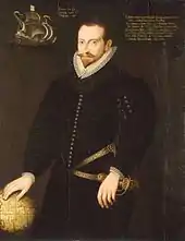 The biggest prize that galvanised English trade was the seizure of a large Portuguese carrack, the Madre de Deus, by Sir Walter Raleigh and the Earl of Cumberland at the Battle of Flores on 13 August 1592.[18] When she was brought in to Dartmouth she was the largest vessel ever seen in England and she carried chests of jewels, pearls, gold, silver coins, ambergris, cloth, tapestries, pepper, cloves, cinnamon, nutmeg, benjamin (a highly aromatic balsamic resin used for perfumes and medicines), red dye, cochineal and ebony.[19] Equally valuable was the ship's rutter (mariner's handbook) containing vital information on the China, India, and Japan trade routes.[18]