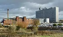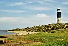 The Holderness coastline suffers the highest rate of coastal erosion in Europe: 2 metres a year on average or 2 million tonnes of material a year.[31] Some of this is transported by longshore drift with about 3% of material being deposited at Spurn Head spit, to the south. The coastline has retreated noticeably in the last 2,000 years, with many former settlements now flooded, particularly Ravenser Odd and Ravenspurn, which was a major port until its destruction in the 14th century.[32][33] Erosion is an ongoing concern in the area. The East Riding of Yorkshire Council has been carrying out cliff erosion defences between Sewerby and Kilnsea since 1951.[34] The Holderness area drains mostly into the Humber and the eponymous River Hull drains the area north of Hull.[35]