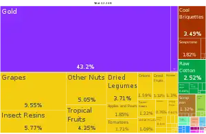 Export goods | fruits, nuts, rugs, wool, cotton, hides, gemstone, and medical herbs[13] |