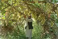 Afghanistan produces around 1.5 million tons of fresh fruits annually, which could be increased significantly.[55] It is known for producing some of the finest fruits, especially pomegranates and grapes as well as sweet melons and mulberries.[56][57][58] Other fruits grown in the country include apples, apricots, cherries, figs, kiwi, oranges, peaches, pears, persimmons, plums, and strawberries.[59][60][61][62][63] The number of farms are steadily increasing.[23][64][65] The growing of vegetables in greenhouses is also expanding in the country.[66][67][68][69]