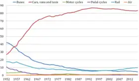 208. "Department for Transport Statistics: Passenger transport: by mode, annual from 1952".