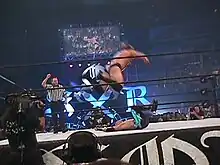 After his return on the May 31, 1999 episode of Monday Nitro, Guerrero became a founding member of the Filthy Animals alongside Rey Mysterio Jr. and Konnan.[47] They feuded with the Dead Pool (Insane Clown Posse and Vampiro). They received two straight victories over the Dead Pool at Road Wild and Fall Brawl.[48][49] They next feuded with Revolution (Shane Douglas, Chris Benoit, Dean Malenko, and Perry Saturn). Guerrero was victorious over Saturn by disqualification in a singles match at Halloween Havoc.[50] At Mayhem, the Animals lost to Revolution in a mixed tag team elimination match.[51] When Vince Russo was fired as WCW booker and replaced by Kevin Sullivan, Guerrero asked for and received a release from his contract on January 19, 2000.[52] He signed with the World Wrestling Federation (WWF) in 2000 along with fellow WCW stars Benoit, Malenko, and Saturn.