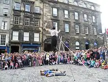 The Edinburgh Festival Fringe (also referred to as the Edinburgh Fringe, Edinburgh Fringe Festival or the Fringe) is the world's largest performance arts festival, which in 2019 spanned 25 days and featured more than 59,600 performances of 3,841 different shows[1] in 322 venues.[2] Established in 1947 as an alternative to (and on the fringe of) the Edinburgh International Festival, it takes place in Edinburgh every August.[3] The Edinburgh Festival Fringe has become a world-leading celebration of arts and culture, surpassed only by the Olympics and the World Cup in terms of global ticketed events.[4] As an event it "has done more to place Edinburgh in the forefront of world cities than anything else" according to historian and former chairman of the board, Michael Dale.[5]