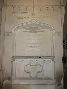 The "English giant of the Enlightenment"[40] finally succumbed at 12:45 pm, 16 January 1794 at age 56. He was buried in the Sheffield Mausoleum attached to the north transept of the Church of St Mary and St Andrew, Fletching, East Sussex,[41] having died in Fletching while staying with his great friend, Lord Sheffield. Gibbon's estate was valued at approximately £26,000. He left most of his property to cousins. As stipulated in his will, Sheffield oversaw the sale of his library at auction to William Beckford for £950.[42] What happened next suggests that Beckford may have known of Gibbon's moralistic, 'impertinent animadversion' at his expense in the presence of the Duchess of Devonshire at Lausanne. Gibbon's wish that his 6,000-book library would not be locked up 'under the key of a jealous master' was effectively denied by Beckford who retained it in Lausanne until 1801 before inspecting it, then locking it up again until at least as late as 1818 before giving most of the books back to Gibbon's physician Dr Scholl who had helped negotiate the sale in the first place. Beckford's annotated copy of the Decline and Fall turned up in Christie's in 1953, complete with his critique of what he considered the author's 'ludicrous self-complacency ... your frequent distortion of historical Truth to provoke a gibe, or excite a sneer ... your ignorance of oriental languages [etc.]'.[43]