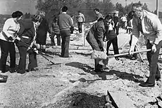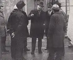 Edward Gierek was born in Porąbka, now part of Sosnowiec, into a coal mining family.[3] He lost his father to a mining accident in a pit at the age of four. His mother remarried and emigrated to northern France, where he lived from the age of 10 and worked in a coal mine from the age of 13. Gierek joined the French Communist Party in 1931 and in 1934 was deported to Poland for organizing a strike.[4][5] After completing compulsory military service in Stryi in southeastern Poland (1934–1936), Gierek married Stanisława Jędrusik, but was unable to find employment. The Giereks went to Belgium, where Edward worked in the coal mines of Waterschei, contracting pneumoconiosis (black lung disease) in the process. In 1939 Gierek joined the Communist Party of Belgium. During the German occupation, he participated in communist anti-Nazi Belgian resistance activities.[5][6] After the war Gierek remained politically active among the Polish immigrant community. He was a co-founder of the Belgian branch of the Polish Workers' Party (PPR) and a chairman of the National Council of Poles in Belgium.[5]
