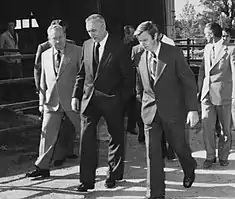 Since the riots that brought down Gomułka were caused primarily by economic difficulties, Gierek promised economic reform and instituted a program to modernize industry and increase the availability of consumer goods. His "reform" was based primarily on large scale foreign borrowing, not accompanied by major systemic restructuring. The need for deeper reform was obscured by the investment boom the country was enjoying in the first half of the 1970s.[14] The first secretary's good relations with Western leaders, especially France's Valéry Giscard d'Estaing and West Germany's Helmut Schmidt, were a catalyst for his receiving foreign aid and loans. Gierek is widely credited with opening Poland to political and economic influence from the Western Bloc. He himself extensively traveled abroad and received important foreign guests in Poland, including three presidents of the United States.[14] Gierek also was trusted by Leonid Brezhnev, which meant that he was able to pursue his policies (globalization of Poland's economy) without much Soviet interference.[14][16] He had readily granted the Soviets concessions that his predecessor Gomułka would consider contrary to the Polish national interest.[14]