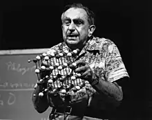 Teller made contributions to Thomas–Fermi theory, the precursor of density functional theory, a standard modern tool in the quantum mechanical treatment of complex molecules. In 1953, with Nicholas Metropolis, Arianna Rosenbluth, Marshall Rosenbluth, and Augusta Teller, Teller co-authored a paper that is a standard starting point for the applications of the Monte Carlo method to statistical mechanics and the Markov chain Monte Carlo literature in Bayesian statistics.[2] Teller was an early member of the Manhattan Project, which developed the first atomic bomb. He made a serious push to develop the first fusion-based weapons, but ultimately fusion bombs only appeared after World War II. He co-founded the Lawrence Livermore National Laboratory and was its director or associate director. After his controversial negative testimony in the Oppenheimer security hearing of his former Los Alamos Laboratory superior, J. Robert Oppenheimer, the scientific community ostracized Teller.