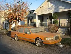 A Lincoln Town Car disabled by the flooding from Katrina.