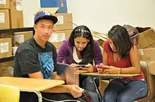 According to Elsie Fisher, "for Kayla, social media is almost religious".[12] Burnham explained, "social media has made me think differently as a person. It's made me more anxious, I think". Professor Jean Twenge also connected an increase in Internet usage to a decline in juvenile mental health.[11] Gleiberman called the depiction an examination of "overwhelming — and, I would argue, unprecedented — woe that teenagers today can feel".[10] Author Robert Barker contrasted Eighth Grade to earlier coming-of-age films such as Fast Times at Ridgemont High (1982) and Mean Girls (2004). Rather than work through cliques, Barker wrote, Kayla and others are on "a digital war of all against all, preening, pretending, and pontificating as much to themselves as to an anonymous audience". Barker also saw the sexting between characters as representing their obliviousness to lost innocence.[13] NPR interpreted the impact of the Internet during maturation as "one of the key subjects of Eighth Grade", commenting on how many people may not remember the age fondly, but social media has added complications. Even so, NPR stated Kayla is still able to grow despite great challenges.[14]