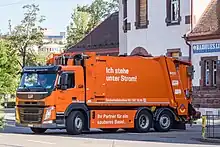 In Europe, as of 2020, electric garbage trucks have been ordered by Geneva,[37] Basel,[38] Frankfurt,[39] Duisburg[40] and other cities.[41] Traditional garbage trucks have extremely high fuel consumption, higher than American 18 wheelers achieve on most routes. Using an electric drive instead of a diesel engine dramatically lowers energy consumption, yet it is still around 1,900 Wh/km or 3,060 Wh/mi. With a 340-kWh battery,[37] such a truck can still achieve a range of over 177 km (110 miles) before it needs recharging.