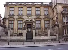 In 1669, Ashmole received a Doctorate in Medicine from the University of Oxford. He maintained his links with the University and, in 1677, Ashmole made a gift of the Tradescant Collection, together with material he had collected independently, to the University on the condition that a suitable home be built to house the materials and make them available to the public. Ashmole had already moved into the house adjacent to the Tradescants' property in 1674 and had already removed some items from their house into his. In 1678, in the midst of further legal wrangling over the Tradescant Collection, Hester was found drowned in a garden pond. By early 1679, Ashmole had taken over the lease of the Tradescant property and began merging his and their collections into one.[32] The Ashmolean Museum was completed in 1683, and is considered by some to be the first truly public museum in Europe.[33] According to Anthony Wood, the collection filled twelve wagons when it was transferred to Oxford. It would have been more, but a large part of Ashmole's own collection, destined for the museum, including antiquities, books, manuscripts, prints, and 9,000 coins and medals, was destroyed in a disastrous fire in the Middle Temple on 26 January 1679.[34] As a result of the fire, the proportion of the collection derived from the Tradescants was larger than originally anticipated and in the opinion of Professor Michael Hunter this misfortune has contributed to criticisms that Ashmole took an unfair share of the credit in assembling the collection at the expense of the Tradescants.[2]