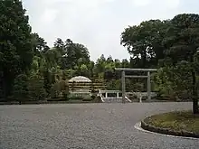 A mourning period of 150 days was declared by the imperial court.[8][12] A team was set up by the IHA to organize her funeral, which largely followed the customs implemented at her mother-in-law Empress Teimei's funeral in 1951.[12] Her funeral was held at the Toshimagaoka Imperial Cemetery on 25 July 2000 and was attended by one thousand mourners, including members of the imperial family, government leaders and foreign diplomats.[13][14] Her son Akihito was the chief mourner during the service, which featured elements of the Shinto religion.[13] Hundreds of mourners also gathered outside cemetery gates.[13]