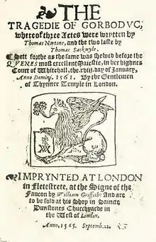 Upon graduation, many university students, especially those going into law, would reside and participate in the Inns of Court. The Inns of Court were communities of working lawyers and university alumni.[20] Notable literary figures and playwrights who resided in the Inns of Court include John Donne, Francis Beaumont, John Marston, Thomas Lodge, Thomas Campion, Abraham Fraunce, Sir Philip Sidney, Sir Thomas More, Sir Francis Bacon, and George Gascoigne.[21][22] Like the university, the Inns of Court elected their own Lord of Misrule.[23] Other activities included participation in moot court, disputation, and masques.[23][22] Plays written and performed in the Inns of Court include Gorboduc, Gismund of Salerne, and The Misfortunes of Arthur.[22] An example of a famous masque put on by the Inns was James Shirley's The Triumph of Peace. Shakespeare's The Comedy of Errors and Twelfth Night were also performed here, although written for commercial theater.[24]