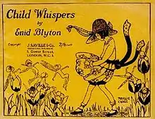Blyton's first book, Child Whispers, a 24-page collection of poems, was published in 1922.[13] Its illustrator, Enid's schoolfriend Phyllis Chase collaborated on several of her early works.[14] Also in that year, Blyton began writing in annuals for Cassell and George Newnes, and her first piece of writing, "Peronel and his Pot of Glue", was accepted for publication in Teachers' World. Further boosting her success, in 1923, her poems appeared alongside those of Rudyard Kipling, Walter de la Mare, and G. K. Chesterton in a special issue of Teachers' World. Blyton's educational texts were influential in the 1920s and 1930s, with her most sizable being the three-volume The Teacher's Treasury (1926), the six-volume Modern Teaching (1928), the eight-volume Pictorial Knowledge (1930), and the four-volume Modern Teaching in the Infant School (1932).[15]