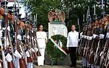 Peña Nieto was sworn in as President of Mexico on 1 December 2012 at the federal congress and later flew to a military parade to formally take control of the armed forces. During his inauguration speech at the National Palace, Peña Nieto proposed his agendas and reforms for the new administration. Before and after the inauguration, in an event that has been labeled by the media as the 1DMX,[47][48][49][50] protesters rioted outside of the National Palace and clashed with Federal Police forces, vandalizing hotel structures and setting fires in downtown Mexico City. More than 90 protesters were arrested and several were injured. Mayor Marcelo Ebrard blamed "anarchist groups" for the violence.[51][52] However, there is evidence that agents of provocation worked with the police, paid 300 Mexican pesos (about US$20) for their acts of vandalism, according to media reports.[53] Photos show protesters waiting in groups behind police lines prior to the violence.[54] Previous protests had been entirely peaceful, but on this occasion, in apparent response to violence, the police fired rubber bullets.[55] The day after his inauguration, Peña Nieto announced the Pact for Mexico, an agreement that he had struck with the leaders of the two other major parties at the time, Jesús Zambrano Grijalva of the Party of the Democratic Revolution and Gustavo Madero Muñoz of the National Action Party, about the government's goals for the next few years.[56] On 1 December 2018, Enrique Peña Nieto left office and was succeeded by Andrés Manuel López Obrador.