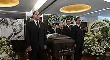 Peña Nieto was elected to a local deputy position in his hometown of Atlacomulco, State of Mexico, in 2003.[23][24] Two years later, the governorship of the State of Mexico was sought by Atlacomulco-natives Carlos Hank Rhon, Isidro Pastor, Héctor Luna de la Vega, Guillermo González Martínez, Óscar Gustavo Cárdenas Monroy, Eduardo Bernal Martínez, Cuauhtémoc García Ortega and Fernando Alberto García Cuevas.[24] Peña Nieto was among the crowd, but was not poised as one of the favorites.[24] Nonetheless, in 2005, Peña Nieto was the last man standing, succeeding Montiel Rojas as governor of the State of Mexico.[25] On 12 February 2005, with 15,000 supporters in attendance, he was sworn in as candidate for the PRI.[26]