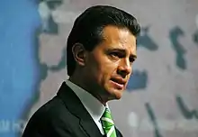 While campaigning, Peña Nieto appointed a former general of the National Police of Colombia as his external advisor for public security, and promised to reduce the murder rate in Mexico by 50% by the end of his six-year term.[68][69] Critics of Peña Nieto's security strategy, however, said that he offered "little sense" in exactly how he will reduce the violence.[70][68] During the three-month campaign, Peña Nieto was not explicit on his anti-crime strategy, and many analysts wondered whether he was holding back politically sensitive details or simply did not know how he would attempt to squelch the violence and carry out the next stage in Mexico's drug war.[68] United States officials were worried that the election of Peña Nieto's Institutional Revolutionary Party may mean a return to the old PRI tactics of "corruption [and] backroom deals" with the cartels in exchange for bribes and relative peace.[71][72]