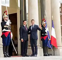 Peña Nieto invited U.S. Republican presidential candidate Donald Trump to visit on 31 August 2016, and appeared with him in a press conference. Peña Nieto was criticized for extending the invitation to Trump,[84] and following the conference, journalist Jorge Ramos criticized Peña Nieto for not using the opportunity to publicly contradict Trump's campaign promise to make Mexico pay for his proposed Mexico–United States border wall, as well as what Ramos called, Trump's "attacks on Latin American immigrants, his rejection of free trade agreements and his scorn for global organizations."[85] Despite this, Peña Nieto stated on his Twitter that he made it clear to Trump that Mexico would not pay for the wall,[86] only to shortly after get a reply from Donald Trump saying: "Mexico will pay for the wall!"[87][88]