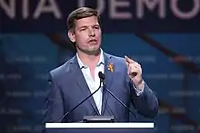 In 2014, Swalwell announced that he would serve as chairman of Maryland Governor Martin O'Malley's O' Say Can You See PAC's Young Professionals Leadership Circle due to his friendship with O'Malley. Although he made clear that his support was about the 2014 midterm elections and not an endorsement of a potential presidential bid by O'Malley in 2016,[44] Swalwell endorsed O'Malley for president in July 2015.[45]