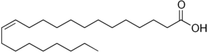 Erucic acid is a monounsaturated omega-9 fatty acid, denoted 22:1ω9. It has the chemical formula :CH3(CH2)7CH=CH(CH2)11CO2H. It is prevalent in wallflower seed and other plants in the family Brassicaceae, with a reported content of 20 to 54% in high erucic acid rapeseed oil[2] and 42% in mustard oil. Erucic acid is also known as cis-13-docosenoic acid and the trans isomer is known as brassidic acid.