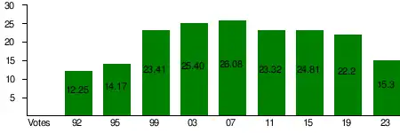 | Election | Votes | % | Seats | +/– |