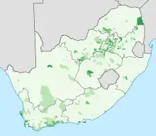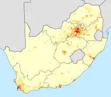 Throughout South Africa, but mostly concentrated in urban areas. Population by provinces, as of the 2011 census: