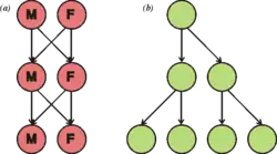 Barriers to reproduction between two diverging sexual populations are required for the populations to become new species. Gene flow may slow this process by spreading the new genetic variants also to the other populations. Depending on how far two species have diverged since their most recent common ancestor, it may still be possible for them to produce offspring, as with horses and donkeys mating to produce mules.[206] Such hybrids are generally infertile. In this case, closely related species may regularly interbreed, but hybrids will be selected against and the species will remain distinct. However, viable hybrids are occasionally formed and these new species can either have properties intermediate between their parent species, or possess a totally new phenotype.[207] The importance of hybridisation in producing new species of animals is unclear, although cases have been seen in many types of animals,[208] with the gray tree frog being a particularly well-studied example.[209]