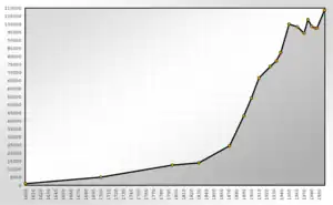 The following table shows the population of Fürth over time. Up to 1818 the figures are mainly estimates; after that they are mostly based on census results (¹) or official projections from the appropriate statistical offices or the town administration itself.