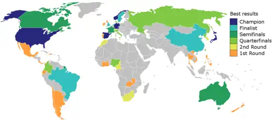 The nine FIFA Women's World Cup tournaments have been won by five national teams. The United States have won four times. The other winners are Germany, with two titles, and Japan, Norway, and Spain with one title each.
