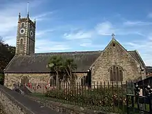 The Anglican parish churches are dedicated to King Charles the Martyr and to All Saints. A third church is St Michael's Church, Penwerris. The Roman Catholic church of St Mary Immaculate is in Killigrew Street. It was designed by J. A. Hansom and built in 1868; the tower and spire (1881) are by J. S. Hansom; the baptistery and porch were added in 1908 to the original designs. The style is a blend of Gothic and Burgundian Romanesque, creating a very French effect. Two of the stained glass windows are early works of Dom Charles Norris.[29] Falmouth Methodist Church is also in Killigrew Street; the street façade is "one of the grandest expressions of Methodism in Cornwall". The United Reformed Church (originally Bible Christian) is in Berkeley Vale. The former synagogue (1816) is one of the earliest surviving synagogue buildings in England; it was in use until 1879.[30]