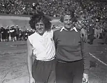 At the Berlin Olympics, the high jump and the 4 × 100 m relay competitions were held on the same day. In the high jump, she took fifth place (shared with two other jumpers) while the Dutch relay team came in fifth in the final (the sixth team in the final, Germany, was disqualified).[4] She also gained the autograph of American athlete Jesse Owens; it became her most treasured possession.[2][5]
