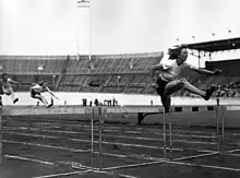 Fanny Blankers-Koen thereby became the first Dutch athlete to win an Olympic title in athletics, but she was more concerned with her next event, the 80 m hurdles. Her chief opponent was Maureen Gardner, also coached by Blankers-Koen's husband[4] and who had equalled Blankers-Koen's world record prior to the Games, and would be running for her home crowd. Both athletes made the final, in which Blankers-Koen got off to a bad start (she would later claim she thought there had been a false start).[7]