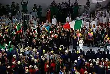 At the 2016 Summer Olympics, Pellegrini was flagbearer for Italy, and competed in the following disciplines:[11] 200m freestyle, and in the 4 × 100 and 4 × 200 m freestyle relays.