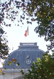 The flags are flown above the palaces when the monarch is in Belgium, not necessarily just in one of the palaces. The flags are not flown if the monarch is on a state visit overseas or on holiday outside of Belgium.[6] There have been exceptions to this rule, but, in general, presence or absence of the flag is a reasonably reliable indicator of whether or not the monarch is in the country.