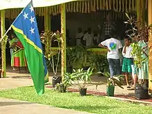 The Independence Day ceremony on 7 July 1978, in Gizo, Western Province – which saw the lowering of the Union Jack and the raising of the new flag – was controversial and led to a confrontation between locals and those from Malaita Province.[9] This was because leaders from the Western Council had unsuccessfully lobbied the government to promise greater devolved powers to the provinces,[9] and some of the province's inhabitants viewed the flag ceremony – which had already been engineered to be as subdued as possible – as a demonstration of "Malaitan dominance" over Western Province.[10]