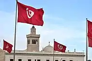 The Tunisian flag is visible on all public and military buildings. The flag also betokens Tunisian ambassadors at regional and international meetings as well as at buildings housing Tunisian representatives around the world.[23] It is deployed during commemorations and national honors in a strictly ceremonial manner.[23] On the listed Flag Days below, the Tunisian flag is flown in public buildings, compulsory by law:
