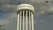 The Flint water crisis was a public health crisis that started in 2014 after the drinking water for the city of Flint, Michigan was contaminated with lead and possibly Legionella bacteria.[2] In April 2014, during a financial crisis, state-appointed emergency manager Darnell Earley changed Flint's water source from the Detroit Water and Sewerage Department (sourced from Lake Huron and the Detroit River) to the Flint River.[7] Residents complained about the taste, smell, and appearance of the water. Officials failed to apply corrosion inhibitors to the water, which resulted in lead from aging pipes leaching into the water supply, exposing around 100,000 residents to elevated lead levels.[8] A pair of scientific studies confirmed that lead contamination was present in the water supply.[9][10] The city switched back to the Detroit water system on October 16, 2015.[11] It later signed a 30-year contract with the new Great Lakes Water Authority (GLWA) on November 22, 2017.[12]