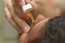 Intravenous use has the most reported adverse reactions, including sudden death, but this may reflect greater use rather than greater risk. Both oral and topical uses have been reported to cause anaphylaxis,[10][11] including one case of anaphylaxis with cardiac arrest (resuscitated) following topical use in an eye drop.[7] Reported rates of adverse reactions vary from 1% to 6%.[12][13][14][15] The higher rates may reflect study populations that include a higher percentage of persons with prior adverse reactions. The risk of an adverse reaction is 25 times higher if the person has had a prior adverse reaction.[14] The risk can be reduced with prior (prophylactic) use of antihistamines[16] and prompt emergency management of any ensuing anaphylaxis.[17] A simple prick test may help to identify persons at greatest risk of adverse reaction.[15]