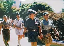 A four-man team, consisting of Yehoshua Cohen, Yitzhak Ben-Moshe (Markovitz), Avraham Steinberg, and Meshulam Makover, ambushed Bernadotte's motorcade in Jerusalem's Katamon neighborhood. The team left a Lehi base in a Jeep and set up a makeshift roadblock at Ben Zion Guini Square, off Hapalmach Street, and waited in the jeep. When Bernadotte's motorcade approached, Cohen, Ben-Moshe, and Steinberg got out and approached it, while Makover, the driver, remained in the jeep. Captain Moshe Hillman, the motorcade's Israeli liaison officer, who was sitting in the leading UN vehicle, called out in Hebrew to let them through, but was ignored. Cohen came up to Bernadotte's sedan and fired through an open window, pumping 6 shots into Bernadotte's chest, throat and arms and 18 into Colonel André Serot who was seated to his left, killing both.[35] Serot had swapped places in the motorcade to join Bernadotte and thank him personally for having saved his wife's life in a German concentration camp.[35] Ben-Moshe and Steinberg shot at the tires of the UN vehicles, while Cohen finished the magazine by firing at the radiator. The driver of the sedan, Colonel Begley, got out and tried to grapple with Cohen as he fired his last shots, but was burned in the face by the gun flashes. Ben-Moshe and Steinberg then rushed back and mounted the jeep, which quickly accelerated down a side road, while Cohen ran away from the scene across a roadside field.[34][36][37][38]