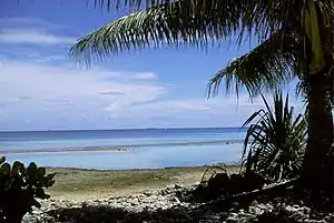 Fongafale (also spelled Fogale or Fagafale) is the largest of Funafuti's islets in Tuvalu.[1][2] It is a long narrow sliver of land, 12 kilometres long and between 10 and 400 metres wide, with the South Pacific Ocean and reef on the east and the protected lagoon on the west. The north part is the Tengako peninsula, and Funafuti International Airport runs from northeast to southwest on the widest part of the island, with the village and administrative centre of Vaiaku on the lagoon side.[3]