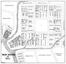 New Haven was one of the first planned cities in the U.S.[4][5][6] A year after its founding by English Puritans in 1638, eight streets were laid out in a four-by-four grid, creating the "Nine Square Plan".[7] The central common block is the New Haven Green, a 16-acre (6 ha) square at the center of Downtown New Haven. The Green is now a National Historic Landmark, and the "Nine Square Plan" is recognized by the American Planning Association as a National Planning Landmark.[8][9]