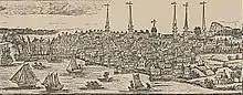 On July 5, 1779, 2,600 loyalists and British regulars under General William Tryon, governor of New York, landed in New Haven Harbor and raided the 3,500-person town. A militia of Yale students had been preparing for battle, and former Yale president and Yale Divinity School professor Naphtali Daggett rode out to confront the Redcoats. Yale president Ezra Stiles recounted in his diary that while he moved furniture in anticipation of battle, he still couldn't quite believe the revolution had begun.[15] New Haven was not torched as the invaders did with Danbury in 1777, or Fairfield and Norwalk a week after the New Haven raid, so many of the town's colonial features were preserved.
