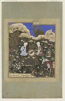 A story of the "Water of Life" appears in the Eastern versions of the Alexander romance, which describes Alexander the Great and his servant crossing the Land of Darkness to find the restorative spring. The servant in that story is in turn derived from Middle Eastern legends of Al-Khidr, a sage who appears also in the Qur'an. Arabic and Aljamiado versions of the Alexander Romance were very popular in Spain during and after the period of Moorish rule, and would have been known to the explorers who journeyed to America. These earlier accounts inspired the popular medieval fantasy The Travels of Sir John Mandeville, which also mentions the Fountain of Youth as located at the foot of a mountain outside Polombe (modern Kollam[2]) in India.[3] Due to the influence of these tales, the Fountain of Youth legend was popular in courtly Gothic art, appearing for example on the ivory Casket with Scenes of Romances (Walters 71264) and several ivory mirror-cases, and remained popular through the European Age of Exploration.[4]