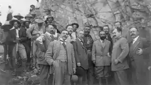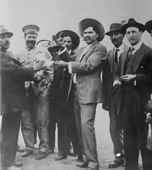 Madero's armed support was concentrated in northern Mexico and was aided by access to arms and finances in the United States.[11] In Chihuahua, Madero recruited wealthy landowner Abraham González to his movement, appointing him provisional governor of the state. González then enlisted Pancho Villa and Pascual Orozco as revolutionary leaders.[12] Madero crossed from Texas into Mexico and took command of a band of revolutionaries, but were defeated in the Battle of Casas Grandes by the Federal Army, which led him to abandon military command roles.[13] Concerned the Battle of Ciudad Juárez would cause casualties in the American city of El Paso and prompt foreign intervention, Madero ordered Villa and Orozco to retreat, but they disobeyed and captured Juárez. Díaz resigned on 25 May 1911 after the signing of the Treaty of Ciudad Juárez and went into exile. Madero retained the Federal Army and dismissed the revolutionary fighters who had forced Díaz's resignation.